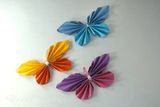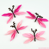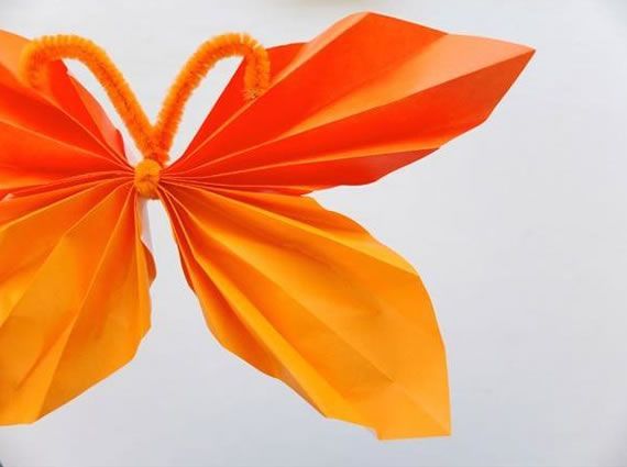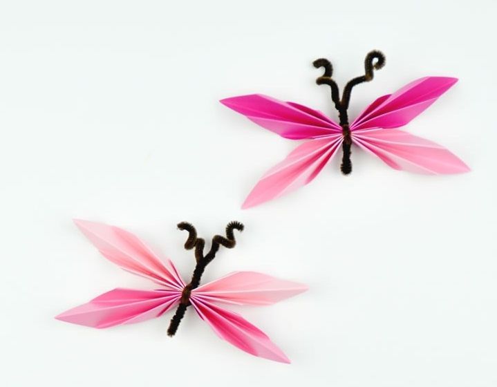 Используйте бумагу разных оттенков, каждая бабочка сделана из двух квадратов бумаги разных оттенков.