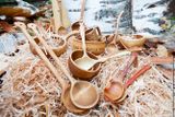 Ваш хенд мейд декор магазин точно украсят яркие предметы народных промыслов. Топориком доводится задняя часть ложки, принимая окончательный вид.