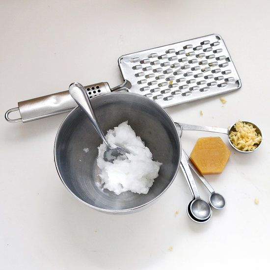 1. Добавьте кокосовое масло в небольшую миску, либо безопасную для использования в микроволновой печи или чтобы поставить на водяную баню. Из кокосового масла получается гладкий слегка сладковато пахнущий лосьон, с высоким содержанием антиоксидантов, который отлично подходит для вашей кожи. Натрите и добавьте пчелиный воск в миску.