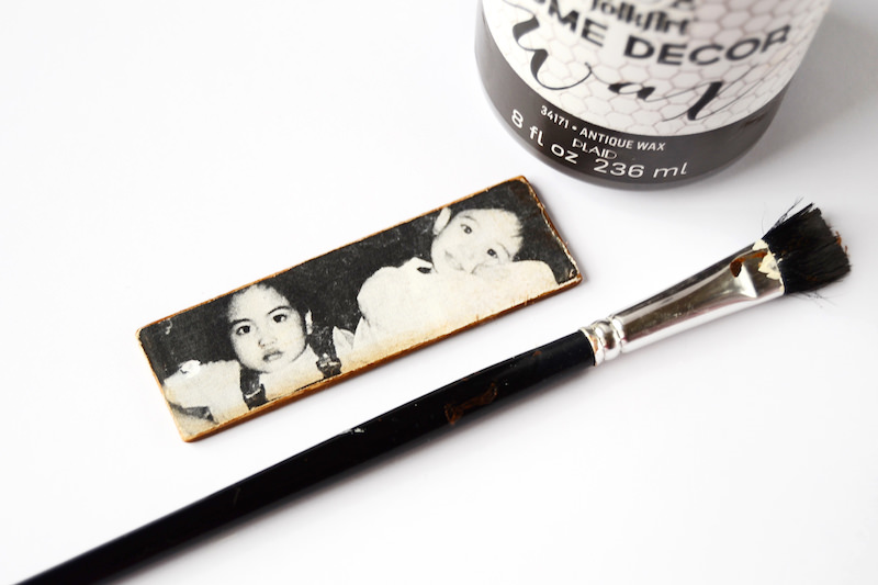 Шаг 7. После того, как вы закончите удаление бумаги, добавьте «античности». Используйте Античный воск и нанесите его по краям вашего брелка.