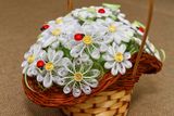 Таким образом делаем 6 белых заготовок для лепестков цветка, одну желтую — для сердцевины и 2 зеленых — для листочков.
