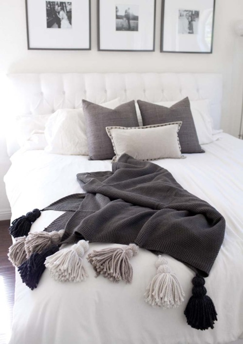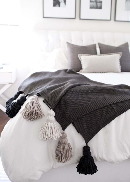 В межсезонье, когда в домах прохладно хочется горячего какао, уютного пледа. Добавьте вашему пледу шрама. Это легко сделать, путем добавления кисточек.