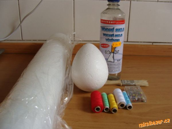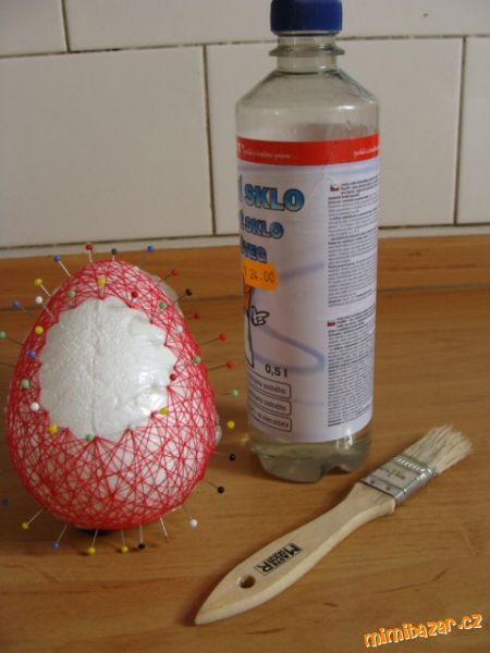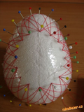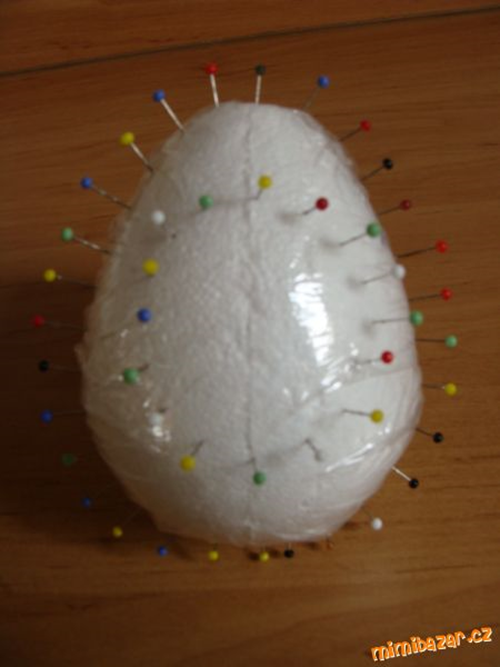 3. Разместите равномерно еще один ряд булавок на передней части пенопластового яйца, так чтобы образовалось маленькое окошко.