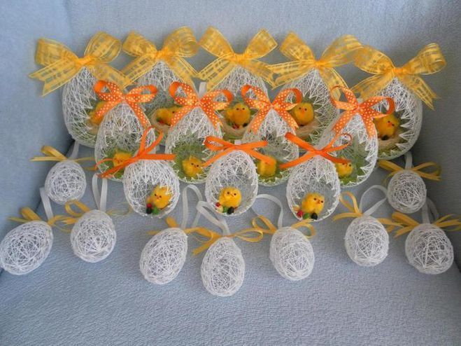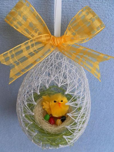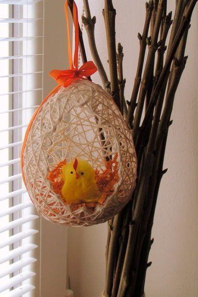 До светлого дня Пасхи еще есть время! Вы планируете делать пасхальные украшения для вашего дома? Вот супер идея, как сделать декоративные яйца из ниток. В качестве пресс-формы, используется пенопластовый шарик в форме яйца. Вы можете использовать различные цвета нитей, чтобы сделать красочные корзинки. Повесьте декоративные яйца или просто разместите их на столе возле Пасхальных куличей и крашеных яиц. Эти милые поделки могут стать прекрасным дополнением к вашим пасхальным украшениям. Творите!