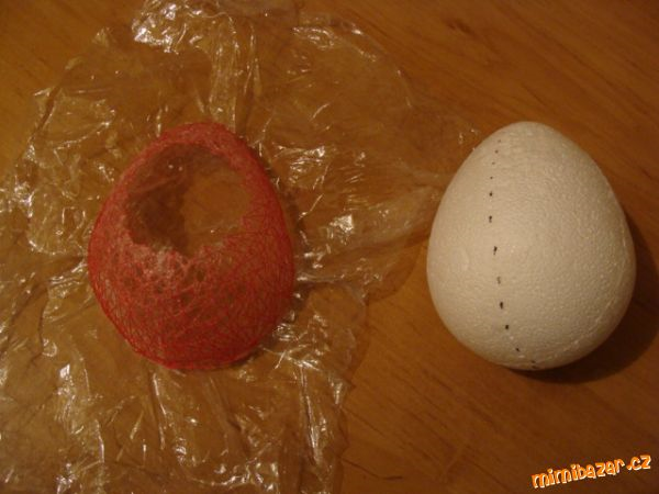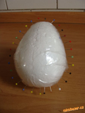 2.Отметьте пунктирной линией продольный диаметр формы. Оберните пенопластовое яйцо полиэтиленовой пленкой.