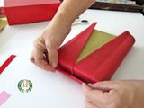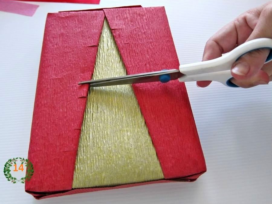 Затем вам необходимо взять упаковочную бумагу другого цвета, которой вы покроете всю коробочку.
