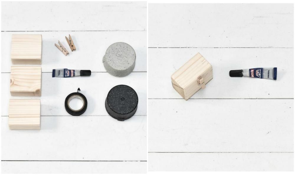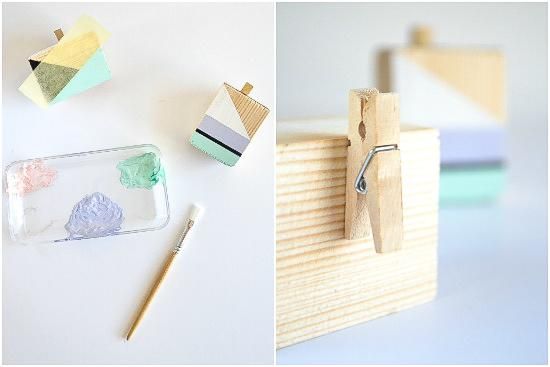 После того, как вы нанесли краску, оставьте заготовки полностью высыхать. Затем нужно аккуратно приклеить прищепочку к обратной стороне блока.