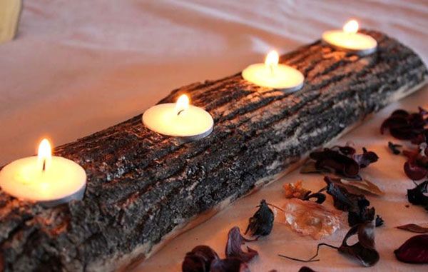Хотите создать в доме праздничную и романтическую атмосферу, но бюджет ограничен? С помощью деревянных колод можно создать оригинальные подсвечники своими руками из дерева, которые могут служить как отдельная композиция, так и практичное дополнение для вставки в топочную часть фальш-камина (например, в дачном домике или для русской бани в лесу).