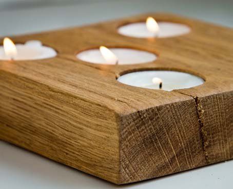 Вставьте свечи в отверстия. Стильный подсвечник из дерева готов.