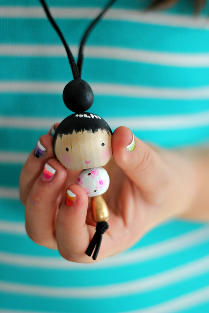 Привет, друзья! Сегодня предлагаю вам вместе с вашими очаровательными маленькими помощниками смастерить ожерелье в виде подвески куколки. Это ожерелье маленькая кукла из деревянных бусин идеально подходит для дочерей, племянниц, а также в качестве подарка на день рождение, Рождество и в любое время года :)