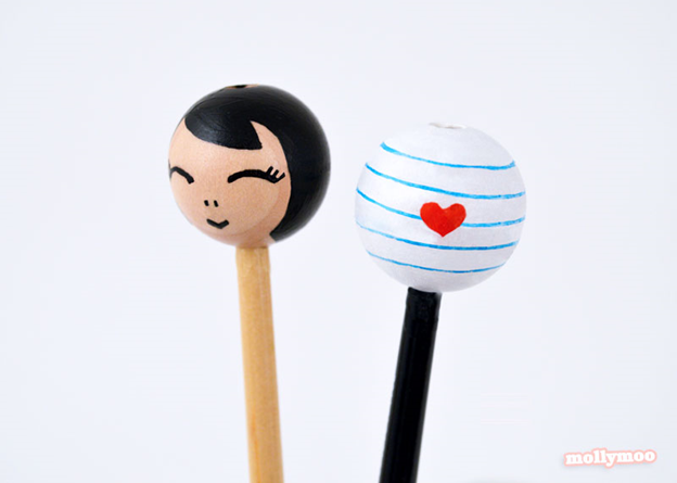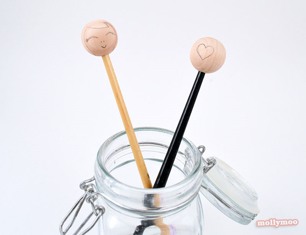 По желанию присоедините дополнительный деревянную бусину или из полимерной глины в верхней части головы, используя горячий клей.