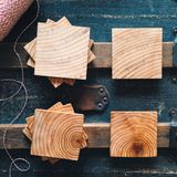Зашлифуйте наждачной бумагой обрезки соснового бруса разной толщины.
