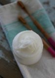 1. Растопить кокосовое масло на слабом огне. Используйте водяную баню, помещая кокосовое масло в стеклянную банку, которую можно использовать, для хранения вашей зубной пасты, затем поместить банку в кастрюлю с небольшим количеством горячей воды.