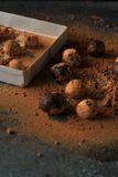 С помощью чайной ложки нужно сформировать шарики, выложить их на пергаментную бумагу и оставить в холодильнике на протяжении ночи. Затем конфетки нужно обвалять в какао и они готовы к подаче.