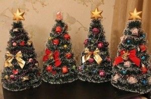 Готовая елка дополнительно украшается дождиком. Чудесный праздничный подарок готов! Сладости подлежат съеданию, конус можно применять в качестве основания еще одной елки.