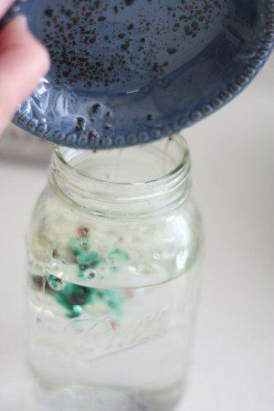 4. Осторожно вылейте полученную смесь в банку с водой.