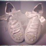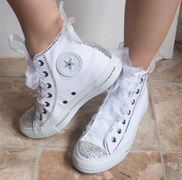Вам нужна нарядная и самое главное удобная обувь? Давайте посмотрим правде в глаза, если какое-то мероприятие, например, свадьба, будет долго длиться, и вы будете все время на ногах. Почему бы не сбросить каблуки и чувствовать себя комфортно в гламурненьких кедах со стразами, сделанных своими руками?