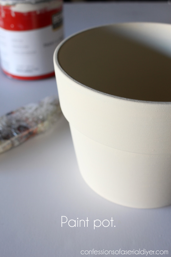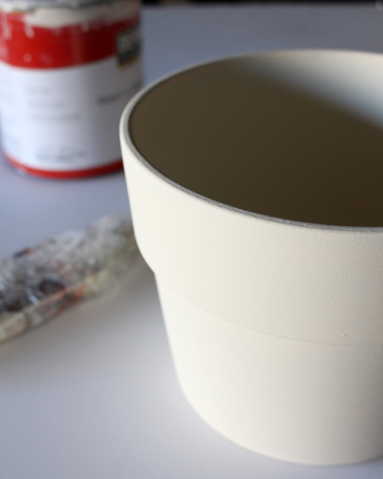 Для начала начните с окрашивания верхнего края горшка. Выберите любой понравившийся вам цвет. В данном случае выбран белый цвет, но цвет морской пены, зеленый или светло - бирюзовый будет выглядеть тоже замечательно.