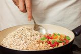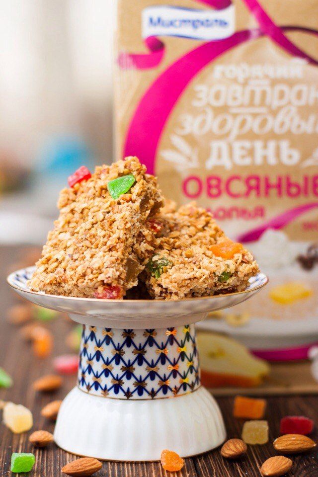 Теперь добавьте туда порубленные цукаты и орехи, а затем всыпьте хлопья геркулес.
