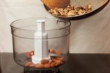 Немного поджарьте смесь грецких орехов и миндаля, дайте им остыть и затем измельчите с помощью блендера.