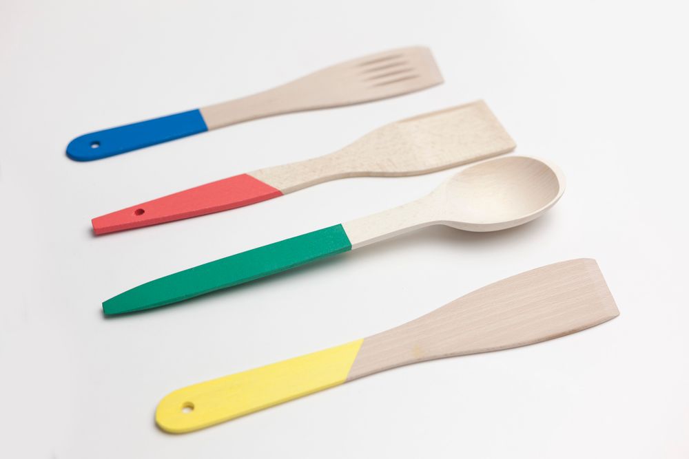 Сердце дома - это конечно кухня. Вы можете иметь забавные и яркие тарелки, чашки и даже мебель, а как насчет аксессуаров? У каждого есть набор простых деревянных лопаток на кухне, но вы даже не догадываетесь что они могут стать холстом для творчества. Объединить с общей цветовой гаммой вашей кухни или принести некоторую причудливость набору поможет этот замысел. Быстрым взмахом кисти вы превратите скучные деревянные ложки и лопатки в произведение искусства. Чтобы сделать цветные кухонные лопатки вам необходимо: