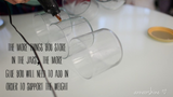 Все, что вам нужно сделать, это выстроить банки в форме пирамиды. Там, где банки соприкасаются, вам нужно будет приклеить их вместе клеем. Вы можете использовать высокопроизводительный клей пистолет для этого, E6000 или другой клей, подходящий для стеклянных поверхностей.