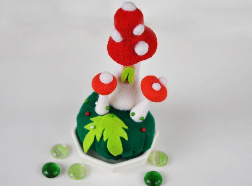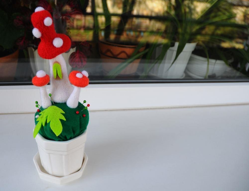 Оригинальным подарком или украшением интерьера может стать практически все, что угодно, даже такой простой и утилитарный, на первый взгляд, предмет как игольница. Впрочем, игольница может стать целой объемной композицией: от полянки в лесу до сказочного замка. Не верите? Техника сухого валяния позволяет создавать удивительные вещи буквально на пустом месте!
