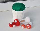 Шляпка мухомора изготавливается совершенно аналогично, только без свободных соединительных прядок. Вы можете придать ей абсолютно любую форму.