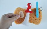 Хотите добавить побольше декора, например, превратить мухомор в домик? Для этого достаточно сделать заготовку декоративного окошка из подходящей шерсти. Деталь должна быть максимально тонкой и с ровными краями, поэтому особое внимание следует уделить валянию торцевых частей заготовки.