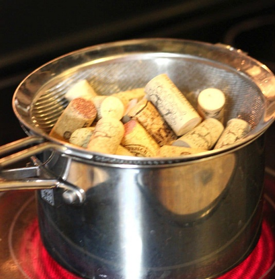 Начните пропаривание винных пробок в течение нескольких минут на водяной бане, чтобы смягчить их.