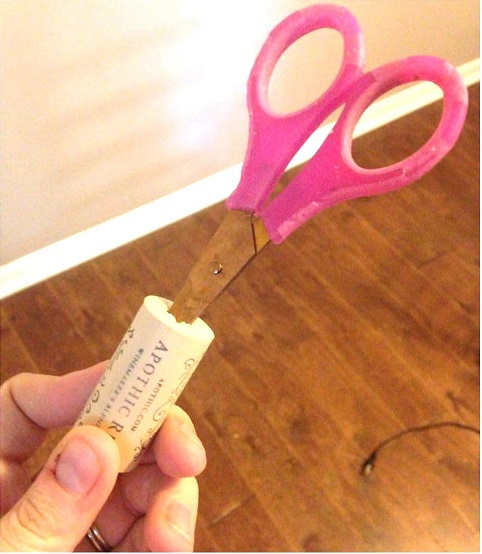 Затем используйте ножницы или нож, чтобы сделать глубокое отверстие в полости в пробки (вы также должны немного прокрутить ножницы, чтобы сделать отверстие достаточно широким).