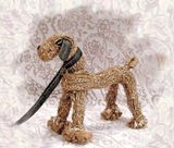 Третья часть нитей (их 10) идёт на изготовление хвоста. Соберите нити с проволокой в пучок, обмотайте его одной из рабочих нитей на длину 5 см и закрепите узелком. Согните хвостик, как показано на рисунке. Остатки нитей и проволоку обрежьте, оставив концы длиной 2-3 см, загните их и заправьте крючком вовнутрь. Можно ещё раз перевязать туловище собачки дополнительными нитями.