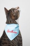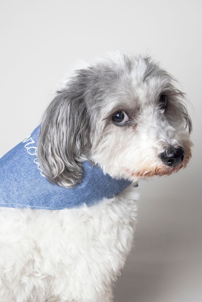Чтобы сшить бандану для собаки - последовательность работы точно такая же, только в зависимости от размеров животного, вам может понадобиться больше ткани и вышивка займет больше времени.