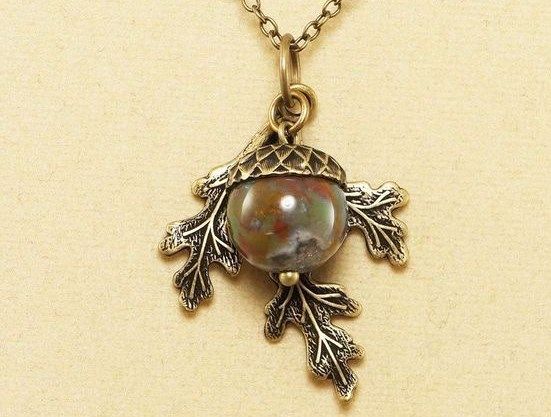 Осенняя пора обязательно порадует нас обилием желудей в дубовых рощах. Их часто используют для поделок дети в школах и детских садиках. Мы же сегодня будем делать волне "взрослое" украшение, только по виду напоминающее нам плод дуба. Сам желудь нам заменит стеклянный шарик, который можно приобрести в магазине с товарами для рукоделия.