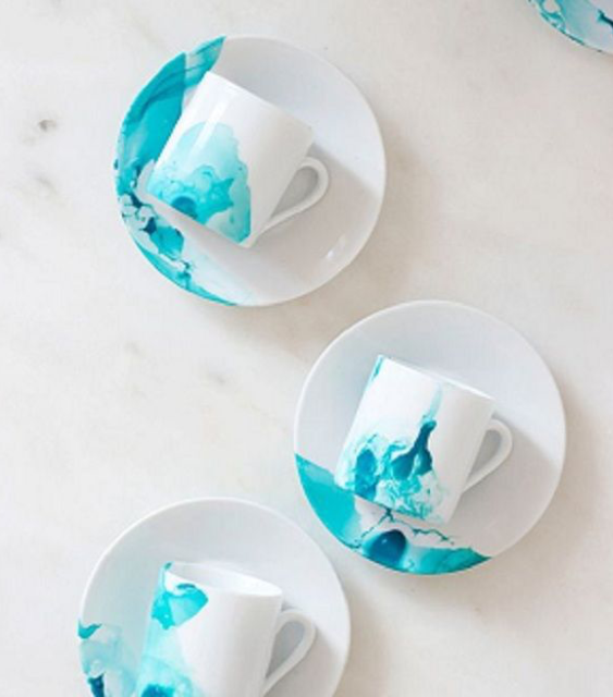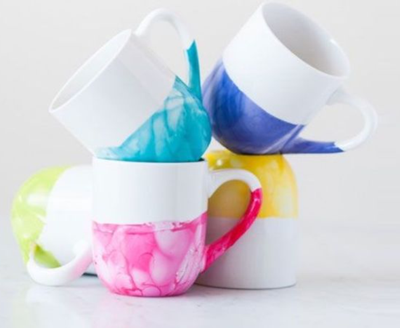 Используйте жидкость для снятия лака, чтобы удалить излишки на лака дне и внутри кружки. Вы можете поиграть с процессом, если хотите кружку, полностью стилизованную под мрамор. То есть окунайте ваш сосуд в подкрашенную воду полностью или наполовину.