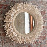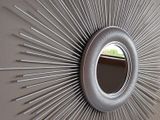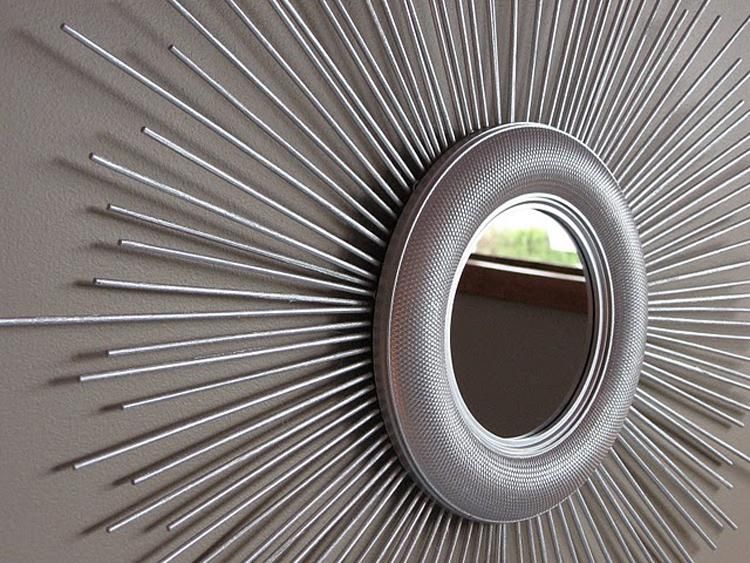 Едва ли не самый часто встречающийся декор. Вам понадобится: круг фанеры, материал для декорирования (деревянные плашки, сухие ветки, металлические прутки — словом, всё что угодно), клей и, возможно, краска. Выбранный декоративный материал приклеивается по кругу, обрабатывается краской или лаком, а в центре устанавливается зеркало.