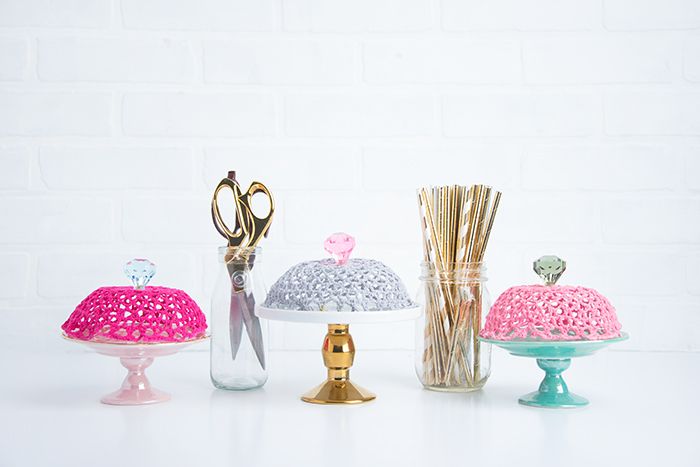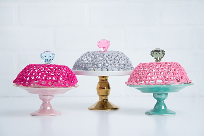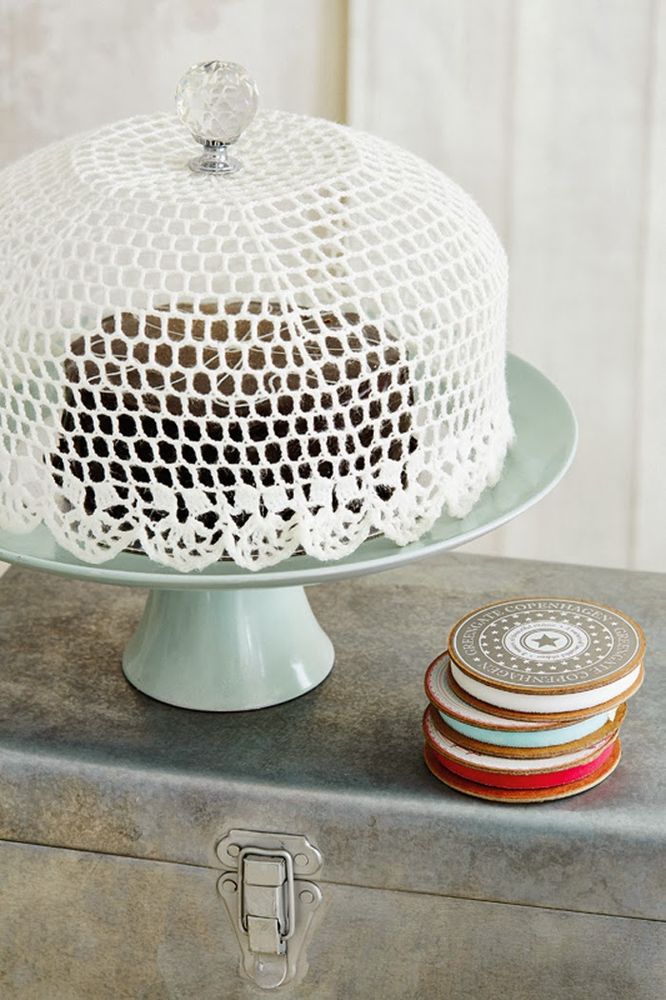 9. Вот и все готово! Просто накройте вязанной крышкой торт на подставке или продукты на обеденной тарелке, и вы готовы к презентации!