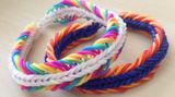 Рекомендации: лучше менять цвета через каждые 4-5 рядов. Сначала можете поработать с двумя цветами, а потом уже сделать браслет в виде радуги. Длина браслета регулируется по ходу работы. Обращаем ваше внимание, что этот браслет очень хорошо растягивается. Контролируйте процесс плетения, чтобы готовый браслет не начал сваливаться с запястья. Наиболее важный момент - это то, как вы соедините браслет после окончания работы. От этого будет зависеть останется ли он целым или рассыплется.