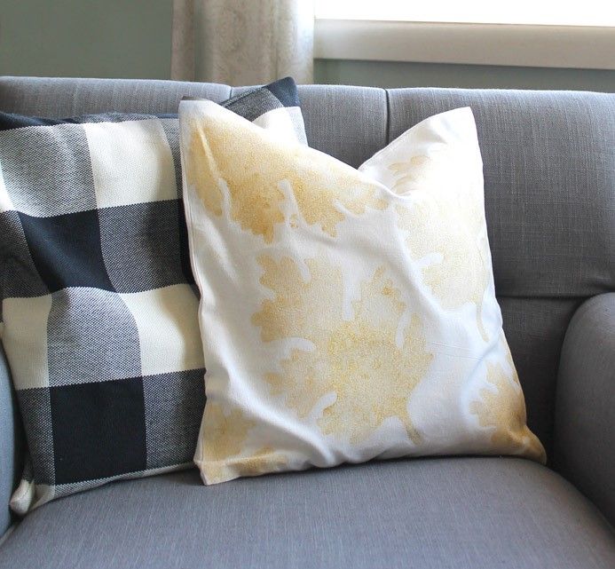 Можно использовать кисть, чтобы растушевать рисунок. Также переместите трафарет в другое место на наволочке и повторите процесс. Не пытайтесь сделать рисунок геометрически правильный или симметричным. Немного абстракции всегда в моде.