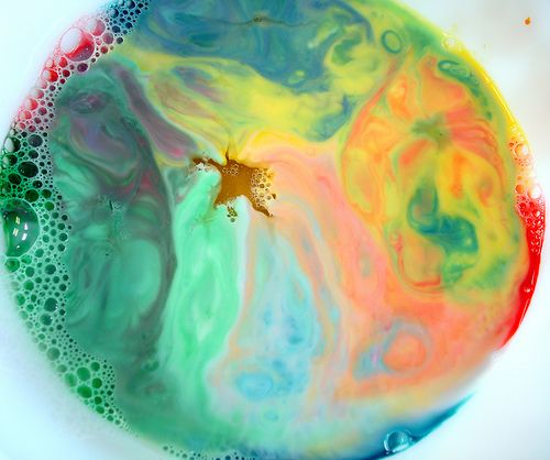 3. Все, что вам теперь нужно сделать, это просто сесть и наблюдать, как молочный жир реагирует на сочетание мыла и пищевых красителей.