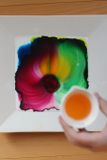 4. В течении некоторого времени на ваших глазах будет происходить что-то фантастическое, вы будете наблюдать за живой абстрактной картиной, на которой все время будут меняться цвета и формы. Вы можете добавлять краситель если захотите усилить тот или иной цвет.