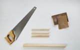 Самая толстая жердь будет «стволом» нашей подставки. Отпилите 30-миллиметровую жердь длиной около 45 см. Ветки дерева-подставки изготавливаются из средних жердей, предварительно напиленных на отрезки около 20 см.
