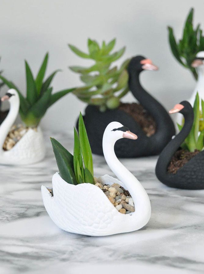 Теперь поместите горшочки внутрь лебедей и готово! Ваши мини-кашпо идеальны!