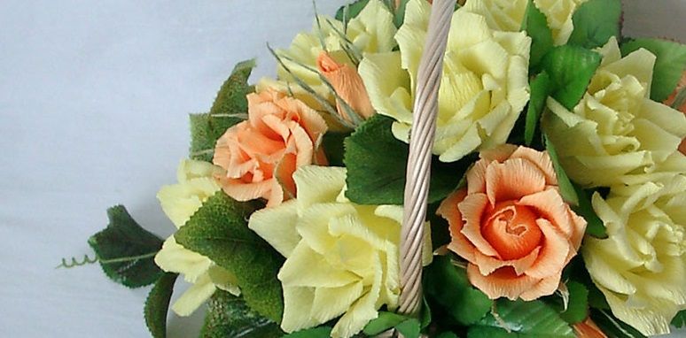 Одним из самых нарядных вариантов считается букет, составленный из роз со сладкой начинкой внутри бутона. Делают такие розы из гофрированной бумаги и в нижеследующем мастер-классе мы расскажем несколько способов и техник работы в этом направлении.