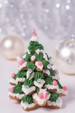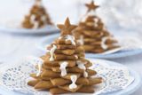 После того, как печенюшки высохли, соедините их в елочку, начиная от самого большого коржа к все более мелким. Закрепить елку можно на зубочистке или скрепить печенья глазурью.