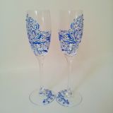 Если же ваша свадьба выдержана в зелёных, бирюзовых или голубых тонах, вы можете расписать свои фужеры принтом в виде павлиньего пера. Смотрится он весьма достойно и нарядно.