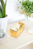 Отрежьте полоску фетра 75×25 мм. Нанесите по полоске клея вдоль двух длинных ее кромок. Возьмите последнюю прямоугольную заготовку из зеркального плексигласа, приложите ее к шкатулке так, чтобы она выполняла функции крышки. Приклейте полоску фетра к внутренним поверхностям крышки и боковины шкатулки, чтобы у вас получился гибкий шарнир.