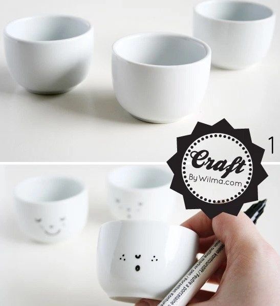 Возьмите черный маркер-перманент и нарисуйте схематично "лицо" своего хендмейд-горшочка. Справятся даже те, кто рисовать не умеет совсем.