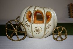 Начиная работу, ознакомьтесь с изображением карет героини этой сказки из детских книжек. Это поможет решить, какие декоративные элементы вы хотите создать. Также вы можете использовать шаблон, где уже представлен вариант украшений. Главное - понимать, какой результат нужно получить в итоге. Чтобы создать украшение в виде подсвечника, необходимо выбрать тыкву подходящего размера. Приступая к творчеству, убедитесь в наличии тыквы небольшого размера, проволоки, пластилина или пластика, клея ПВА, бумаги белого цвета, золотистой и белой красок, контура золотистого цвета и ножа.