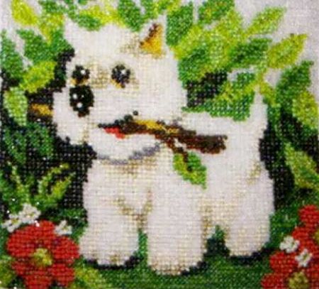 Ваша картина готова? Теперь ее нужно аккуратно постирать и вставить в рамку. А еще такую очаровательную картинку с милым песиком можно пришить на подушечку или сумку. Здесь все зависит от вашей фантазии.